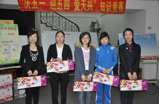 2013年4月28日,公司工會(huì)、團(tuán)委聯(lián)合舉辦“慶五一、迎五四、愛天興”知識(shí)競(jìng)賽。公司36名青年員工參加了競(jìng)賽。通過這次比賽,進(jìn)一步提高了員工對(duì)中華民族熾熱的愛,對(duì)國家前途和命運(yùn)的關(guān)注,增強(qiáng)了青年人的責(zé)任感和使命感。